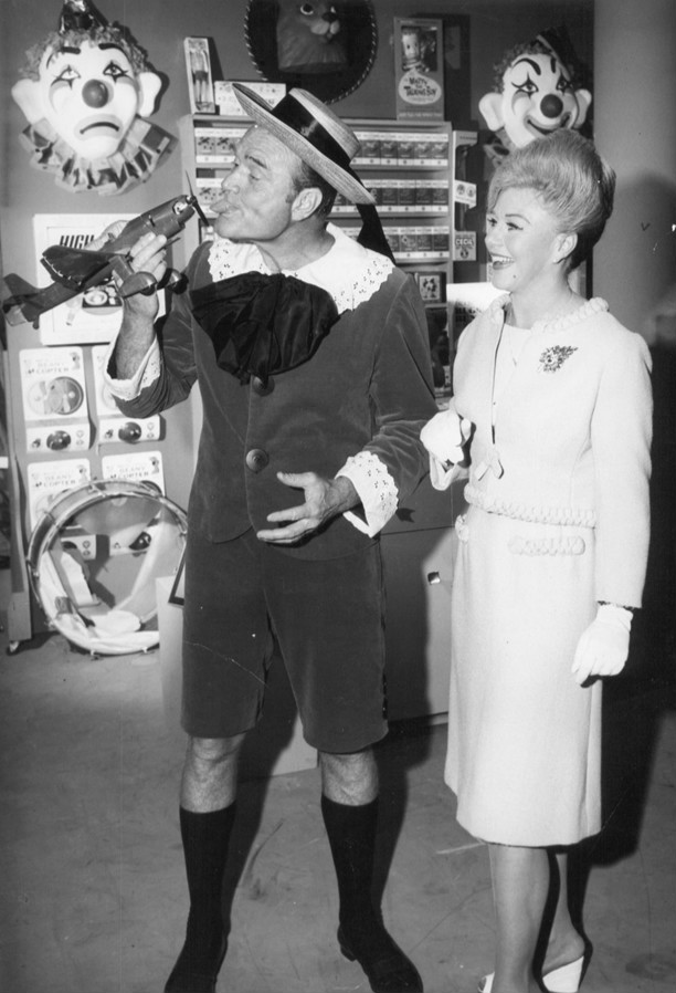 Skelton wanted to follow in his father’s footsteps and be a professional clown…and he accomplished that feat in his halcyon days of performing, not to mention his efforts in medicine shows, vaudeville, burlesque, showboats and even the “walkabout” circuit. They were lean and hungry years for the ambitious funster; the only thing that kept him going was his marriage in 1931 to Edna Stillwell (an usherette at a Kansas theater when he met her in 1930). Edna was the guiding force in Red’s climb to fame; she took on the responsibility of becoming both his business manager and head writer (jobs she continued to perform even after their divorce in 1943). It was Stillwell who came up with an idea for a comedy routine in which her husband demonstrated the various ways people dunked their doughnuts…and though Red soon packed on thirty-five pounds (devouring nearly a dozen crullers at each performance, three times a day) he attracted the attention of RKO, who wanted him to do the routine in their film adaptation of the hit Broadway play Having Wonderful Time in 1938.