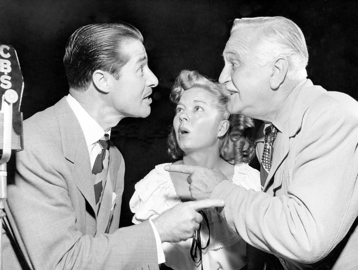 After the cancellation of Drene Time, Don Ameche and Francis Langford continued on in the fall of 1947 with The Old Gold Show on CBS Radio. Carmen Dragon followed the two of them to this new program, and the three of them were joined by announcer Marvin Miller and MGM comic actor Frank Morgan. (Morgan and Phil Rapp were certainly well-acquainted with one another, having both worked on the Good News and Maxwell House Coffee Time programs.) Surviving scripts from The Old Gold Show (showcased in two volumes edited by Ben Ohmart) reveal that the series is one of radio’s true lost treasures—“lost” because most extant broadcasts contain only the Bickersons sketches (the last fifteen minutes of the program). The weekly Morgan/Ameche encounters are riotously funny (with Langford, Dragon and Miller participating as well) and for reasons unexplained, Rapp never thought to include Frank in the Bickersons pieces—though this might have been a force of habit, since Morgan rarely appeared in the Baby Snooks sketches on Coffee Time. (Morgan would have made the perfect sponging relative…on Blanche’s side, of course.)