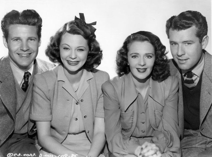 harriet1Three years later, the Nelsons landed a plum gig on The Raleigh Cigarette Program…as the musical entertainment supporting comedian Red Skelton. Premiering in the fall of 1941, Skelton’s program would soon become one of the airwaves’ top comedy shows, and Harriet was often pressed into service to play the female characters on Red’s half-hour of hilarity. For example, when Skelton’s Clem Kadiddlehopper greeted his girlfriend with “We-e-e-e-e-lll Da-a-a-a-i-i-sy June!”—it was Harriet who voiced the object of Clem’s affection. Harriet was also the mother of Junior, “the mean widdle kid.” Ozzie & Harriet’s exposure on the Skelton program allowed Mr. Nelson to join his wife in that acting thing, and the duo made a number of entertaining pictures together, notably Sweetheart of the Campus (1941) and Honeymoon Lodge (1943). Solo, Harriet proved a most fetching leading lady in vehicles like the Boston Blackie programmer Confessions of Boston Blackie (1941) and an entertaining entry from The Falcon franchise, The Falcon Strikes Back (1943).