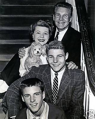 ozzie&harriet1Red Skelton’s induction into the military at the end of the 1943-44 radio season would prove to be a small setback for Ozzie & Harriet. That is, until Fibber McGee & Molly creator Don Quinn suggested to Ozzie that he write his and Harriet’s own program. And so on October 8, 1944—the ninth anniversary of “America’s favorite young couple”—The Adventures of Ozzie & Harriet premiered over CBS Radio. It would stay with “the stars’ address” until 1948, when it moved to NBC for a season…and then from 1949 to 1954 finished out its twelve-year radio run on ABC. When Ozzie & Harriet first went on the air, it was a “wild” (Harriet’s description) sitcom about a bandleader and his young wife—but over the years, it morphed into a gentler family situation comedy, particularly when the Nelsons’ real-life sons, David and Ricky, finally convinced their dad to let them play themselves on the show (before that, the roles had been essayed by professional child actors).