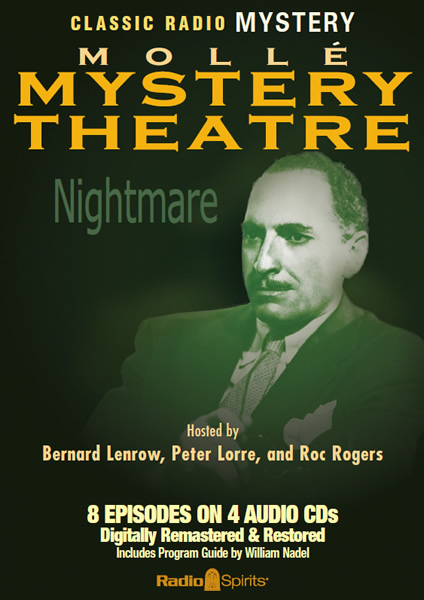 On the Radio Spirits’ horror compilation Great Radio Horror, the Mollé Mystery Theatre is represented with a spine-tingling tale entitled “The Beckoning One” (originally broadcast on June 5, 1945). But devoted fans will want to grab a copy of Mollé Mystery Theatre: Nightmare for their old-time radio libraries—with programs hosted by Roc Rogers, Bernard Lenrow and Peter Lorre, and featuring classics like Cornell Woolrich’s “Nightmare” (brought to the silver screen as the 1947 noir Fear in the Night) and Robert Bloch’s “Yours Truly, Jack the Ripper” (later a memorable episode of TV’s Thriller, hosted by Boris Karloff). The DVD Rare TV Mystery also features an episode of Saber of London from 1952, “The Case of the Locked Room,” with Tom Conway bringing the radio sleuth to boob tube life!