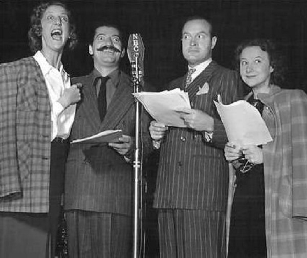 bobhopecast1Allman was heard on radio’s Blondie from time to time as Cora Dithers, the intimidating wife of Dagwood’s boss (played by Hanley Stafford). She also worked on such programs as The Adventures of Maisie, The Amos ‘n’ Andy Show, Beulah, Bright Star, Glamour Manor, The Life of Riley, Meet Mr. McNutley, Mr. and Mrs. Blandings, My Favorite Husband, That’s Rich, and Tommy Riggs and Betty Lou. Though primarily a comedy performer, she could branch out on occasion in dramatic parts on the likes of Broadway’s My Beat, The CBS Radio Workshop, The Lux Radio Theatre, The Railroad Hour, and The Six Shooter. Elvia also “did her bit” for the war effort by appearing on such AFRS favorites as Command Performance, G.I. Journal, and Mail Call. With the departure of radio in the 50s and 60s, Allman still kept her hand in the medium, appearing on such 70s revival series as Heartbeat Theatre, The Hollywood Radio Theatre and The Sears Radio Theatre.