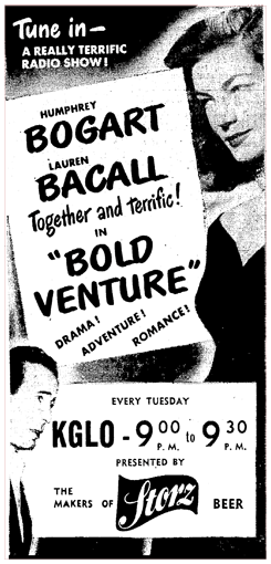 Other series on which Fine and Friedkin turned in scripts include Escape, The Hallmark Hall of Fame, The Line Up, Pursuit, Romance, San Francisco Final, and Sara’s Private Caper. The writing duo also had a hand in the blueprint of what would eventually become radio’s Gunsmoke (they penned the 1949 audition script, “Mark Dillon Goes to Gouge Eye”) after CBS President William S. Paley suggested a series that would echo “Philip Marlowe in the Old West.” In addition, Fine and his partner can take a little credit in luring Humphrey Bogart to a stand-up microphone. Long reluctant to commit himself to the rigors of a live weekly series, Bogie liked Fine and Friedkin’s pitch for Bold Venture, an adventure program that would co-star Mrs. Bogie (Lauren Bacall) and allow them to record 3-4 shows in advance while he and Baby concentrated on their film careers. Bold Venture would go on to become one of the Fredric W. Ziv radio syndication company’s biggest hits, awarding the husband-and-wife team a princely sum of $4,000 per episode.