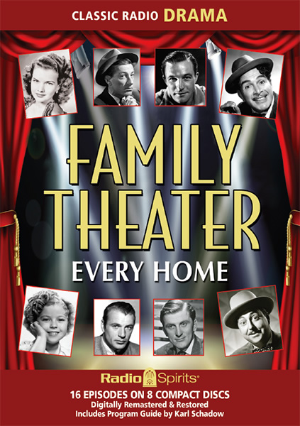 21406Though the Yuletide holidays have come and gone, Radio Spirits features broadcasts of Father Patrick Peyton’s signature radio series on two of our Christmas CD sets: the Family Theater broadcast of “Ruth” (12-23-53) is available on Christmas Radio Classics, and The Voices of Christmas Past spotlights “Crossroads of Christmas” (from 12-17-52).  A frequent guest on the program, Jack Benny, can be heard on Family Theater’s “The Golden Touch” (05-23-51) on the Benny collection Be Our Guest.  But for the fullest and finest representation of Family Theater, you need to purchase a copy of Every Home, an eight-CD set featuring stars and radio favorites like Fred Astaire, Shirley Temple, Kirk Douglas, and Ethel Barrymore.  Happy birthday to the man who taught us that “A world at prayer is a world at peace.”