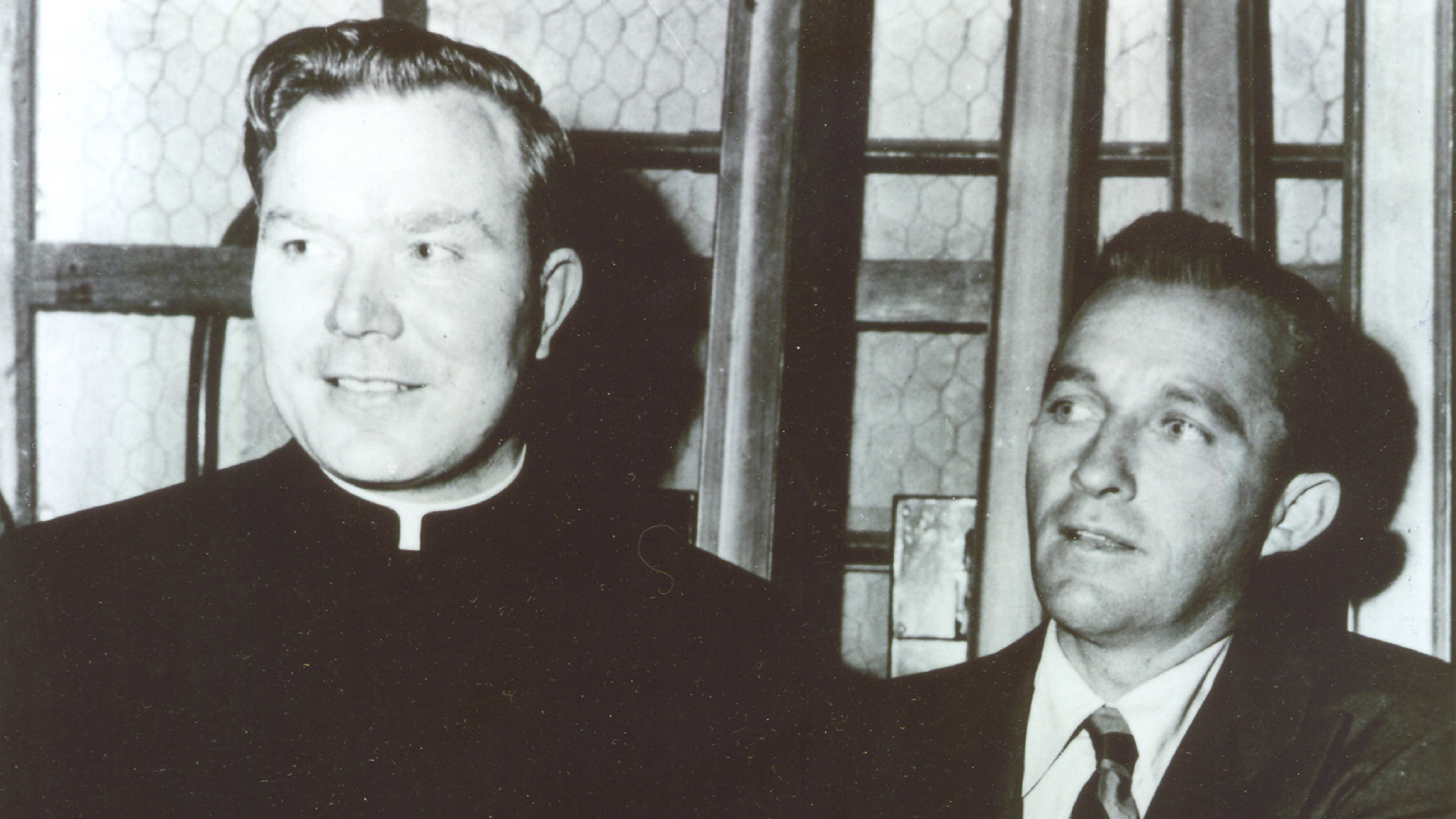 peyton9Patrick pursued a B.A. in Philosophy within the University of Notre Dame’s Moreau Seminary beginning in 1932.  His career as a priest saw dark clouds on the horizon in 1938, when Peyton was diagnosed with tuberculosis—and he would later credit the attention and prayers from his sister Nellie and Father Cornelius Hagerty (his mentor at Notre Dame) with what was unquestionably a miracle: the patches on his right lung would heal to the utter bewilderment of his doctors.  Peyton completed his theology studies at Washington, DC’s Holy Cross College and received a special dispensation from the Vatican (stemming from his illness) in May of 1941, allowing him to be ordained as a priest.  He took his vows alongside his brother in June at Notre Dame’s Basilica of the Sacred Heart.