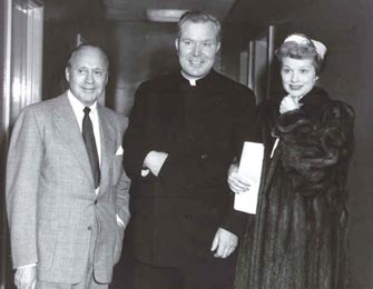 peyton8As the Reverend Father Patrick Peyton, C.S.C., Peyton’s first assignment was as chaplain of the Holy Cross Brothers of the Vincentian Institute in Albany, NY.  His duties were relatively light (owing to WW2), but Father Patrick established himself as one of the leaders stressing the importance of strengthening families both before and after the war, often through the ritual of praying the Family Rosary.  Peyton would also become one of the first mass media evangelicals, chiefly through the radio anthology Family Theater, which premiered over Mutual on February 13, 1947.  Family Theater was a sustained series, yet Father Patrick could exercise enormous influence on the crème de la crème of Hollywood—James Stewart, Gregory Peck, Irene Dunne, Henry Fonda, etc.—to appear on the show as either announcers, narrators, or performers on the program.  Family Theater presented a good many religious-themed dramas (a total of 540 episodes during its ten-year-run), but occasionally dramatized classic tales such as Moby Dick and Don Quixote.