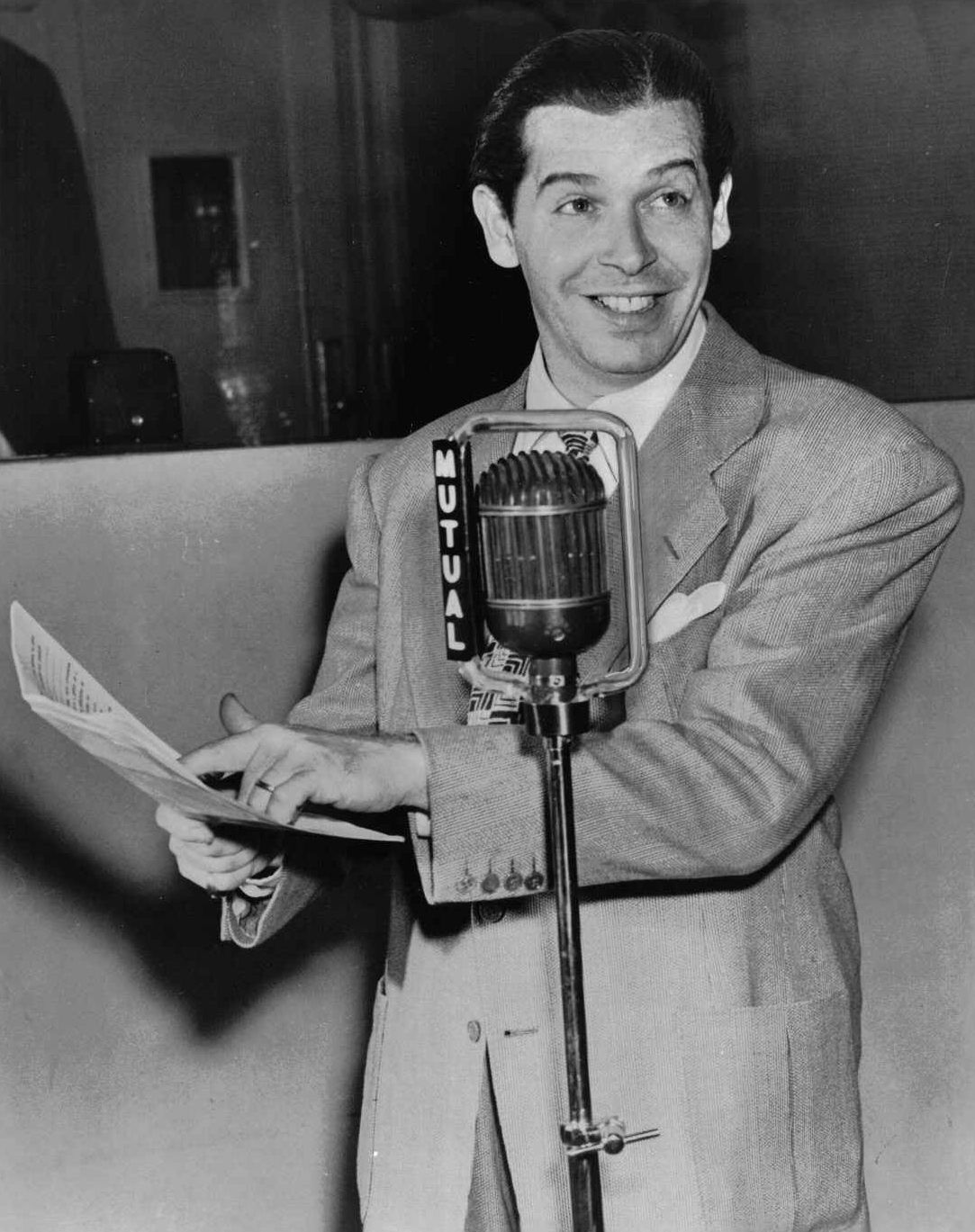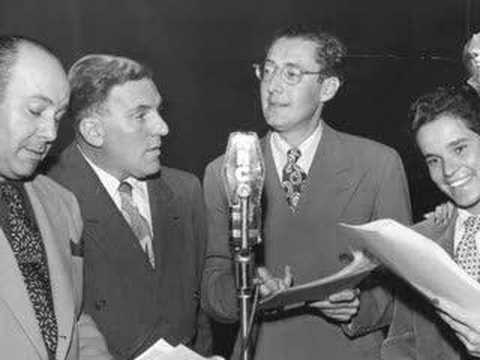 grouchoAs an MGM employee, Brecher was contracted to work solely for the studio—this allowed him to keep his hand in radio by contributing comedian Frank Morgan’s material for MGM’s Good News radio program.  Any other radio work had to be done on the Q.T., so Irving did not receive credit for the brief time he worked on Al Jolson’s show for Old Gold cigarettes.  Brecher also dusted off a pilot he had written, The Flotsam Family, for his good friend Groucho to jumpstart Marx’s sagging radio career.  An audition record was produced, and while Groucho was undeniably funny, the concept of the series—the anarchic Groucho as the patriarch of a family—just didn’t click with either the audience or potential sponsors.  Then Irving happened to spot actor William Bendix in the film The McGuerins from Brooklyn (1942).  Brecher was convinced that with Bendix in the lead role, The Flotsam Family could be a hit—and this prophecy came to pass when the new series, retitled The Life of Riley, premiered over the Blue Network for The American Meat Institute on January 16, 1944.