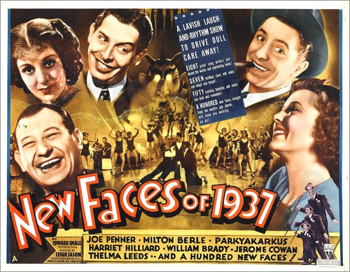 newfacesMilton Berle would be Irving Brecher’s ticket to a career in movie screenwriting.  While churning out the Gillette program, Irving was pressed into assisting on the screenplay for New Faces of 1937, which not only featured his radio boss but other on-the-air favorites such as Joe Penner, Harry “Parkyakarkus” Einstein, Harriet Hilliard Nelson, Bert “The Mad Russian” Gordon, and Patricia “Honey Chile” Wilder.  Brecher also contributed additional dialogue to Fools for Scandal (1938), a film co-directed by Mervyn LeRoy.  LeRoy was a fan of Irving’s work on Berle’s radio program, and hired him to punch up the material of Ray Bolger, Jack Haley, and Bert Lahr on The Wizard of Oz (1939).  This kicked off a long association with MGM; in addition to the screenplays for At the Circus and Go West, Brecher was responsible for Shadow of the Thin Man (1941), Du Barry Was a Lady (1943), Best Foot Forward (1943), Meet Me in St. Louis (1944—which earned Irving an Oscar nomination for Best Screenplay), and Yolanda and the Thief (1945).