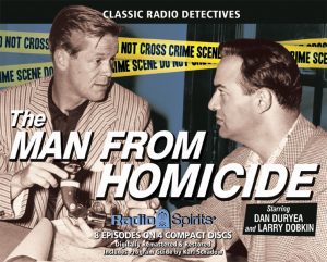 Dan Duryea’s motion picture success gave him plenty of opportunities to emote in front of a radio microphone, guesting on such favorites as Family Theatre, The Lux Radio Theatre, The Sealtest Variety Theatre, and Suspense. Duryea’s most notable contribution in the aural medium, however, was as the star of The Man from Homicide. Homicide was a summer replacement series for Inner Sanctum Mysteries in 1951, so its run was brief — but it featured Duryea as dedicated detective Lt. Lou Dana (replacing fellow noir actor Charles McGraw, who only appeared in the show’s first episode) and OTR veteran Lawrence Dobkin as his sidekick, Sgt. Meyers.