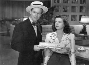 Duryea worked in summer stock, and got his Broadway break playing the small role of a “G-Man” in the Sidney Kingsley play Dead End (1935-37). He went on to additional roles in Many Mansions (1937) and Missouri Legend (1938) before landing a plum assignment as the loutish Leo Hubbard in Lillian Hellman’s The Little Foxes in 1939. His role in Foxes would be reprised in the 1941 feature film version (starring Bette Davis) when Samuel Goldwyn purchased the movie rights to Hellman’s play. While it was believed to be Dan’s film debut, he had previously played a bit role in a 1934 Argentinian film, El Tango en Broadway (Duryea made this film while looking for work on Broadway). Dan made such an impression in Foxes (and a wonderful contribution as “Duke Pastrami” in the 1941 Gary Cooper-Barbara Stanwyck comedy Ball of Fire) that when Paramount brought Hellman’s prequel, Another Part of the Forest, to big screens in 1948, Duryea was cast as the young version of his character’s father (played in Foxes by Carl Benton Reid).