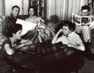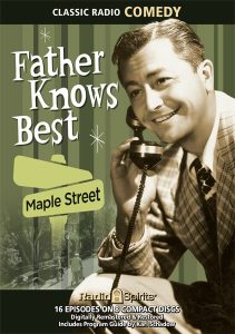 No one was more relieved than Bob Young when MGM finally released him from his contract in the early 1940s. Despite his admirable work ethic, the studio often treated him shabbily (L.B. Mayer thought he had “no sex appeal”), and habitually made him wait until the last minute to learn whether or not he’d be with the organization for another year.  Young then moved on to 20th Century-Fox, appearing in the likes of Claudia (1943), Claudia and David (1946) and Sitting Pretty (1948). He also did two movies at RKO, both of which are now considered masterpieces of film noir: They Won’t Believe Me and Crossfire (both 1947).  On radio, however, his old friend Maxwell House beckoned once again…this time with an offer to play patriarch Jim Anderson in a new NBC radio sitcom: Father Knows Best.