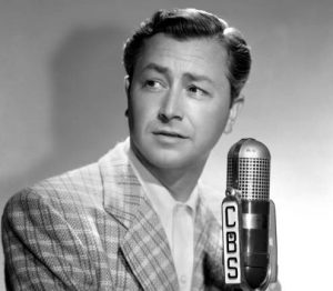 In addition to cavorting with Frank and Fanny, Robert Young was a welcomed guest alongside such radio funsters as Burns & Allen and Fibber McGee & Molly—as well as Bing Crosby and Dorothy Lamour.  Bob was a frequent presence on The Lux Radio Theatre, dramatizing not only his own starring films but those instances where they had to “get Bob,” and he guested on Suspense a number of times as well.  Young’s radio resume includes The Cavalcade of AmericaThe CBS Radio WorkshopCommand PerformanceFamily TheatreHallmark PlayhouseHollywood Star PlayhouseMail CallThe Radio Reader’s DigestThe Screen Guild TheatreThe Silver TheatreStudio One and Theatre of Romance.  In 1943, he starred as a globetrotting newspaperman in a brief Norman Corwin-created series, Passport for Adams.  And in the fall of 1944—when Frank Morgan and Fanny Brice went their separate ways in separate shows—Bob returned to Maxwell House as the emcee for what was often referred to as The Frank Morgan Show (which also featured Cass Daley and Eric Blore in the cast).
