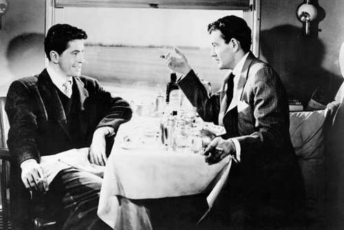 Alan Ladd also dabbled in high school dramatics. His performance as “Koko” in a production of The Mikado attracted the attention of a talent scout with Universal Pictures, who signed Ladd and a number of other young hopefuls to a contract (with options that could last up until seven years). Though Alan did work uncredited in one movie—Once in a Lifetime (1932), as a projectionist—the studio dropped him after six months (they thought he was too short). (Probably not the wisest decision in hindsight: though one of Ladd’s fellow “discoveries” also got a pink slip—Tyrone Power.) Alan graduated from high school in 1934, and from there embarked on a number of careers, including a stint as the advertising manager of a newspaper and a cash register salesman. Ladd was anxious to get back into the film industry, and he worked at Warner Bros. as a grip for two years before a scaffold accident convinced him to quit.
