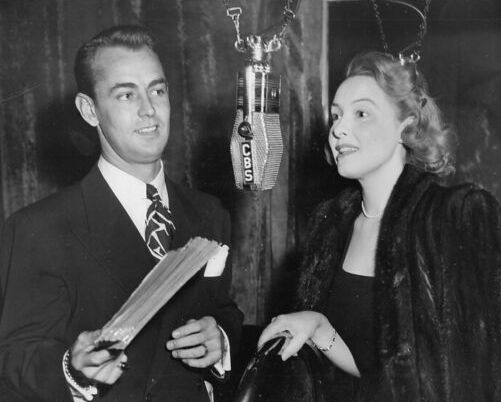 Sue Carol heard Alan Ladd performing on KFWB one night (in a play where he portrayed both the father and son) and was so impressed with his looks after meeting him that she took him on as a client, getting him work in such films as Riders of the Sea (1939) and The Light of Western Stars (1940). Many motion picture appearances followed: Those Were the Days! (1940), Captain Caution (1940), The Black Cat (1941), etc. If you’re familiar with Citizen Kane (1941), you might be interested to know that the reporter smoking a pipe (in silhouette) is Ladd (his voice is a dead giveaway).