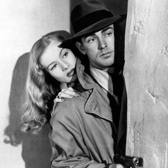 With a small but memorable role in Joan of Paris (1942), Alan Ladd was offered a $400-a-week contract at R-K-O…but he received a better offer at Paramount, where he would make the movie that put him on the map. The studio changed the title of Graham Greene’s novel A Gun for Sale to This Gun for Hire (1942), with Alan cast as a sympathetic hitman named “Raven.” Though Robert Preston was the nominal male lead in the film, Ladd stole the picture with his killer-with-a-conscience character, paired with actress Veronica Lake with whom he shared a remarkable chemistry. (Lake’s 4’11” height was also more suitable to Alan’s 5’6” frame.) This Gun for Hire proved such a success at the box office that Ladd and Lake were re-teamed for a following film, The Glass Key (1942)—based on Dashiell Hammett’s novel (and previously filmed in 1935 with George Raft).